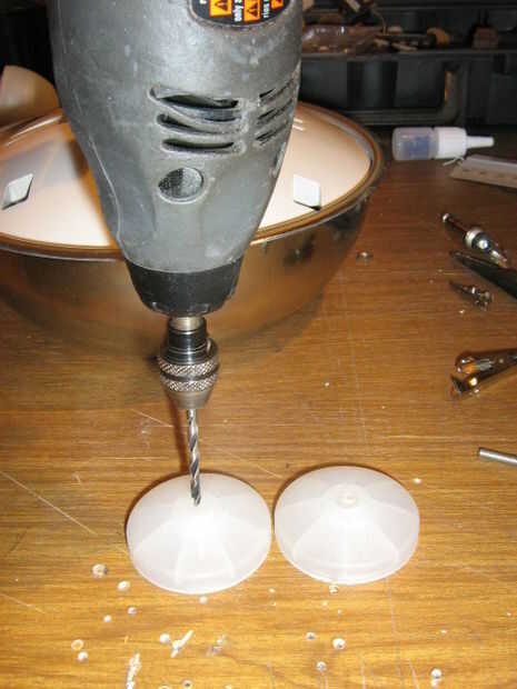 Desarmar la rueda y las ruedas para los "hombros". Perfore el centro de las ruedas.