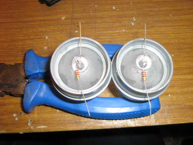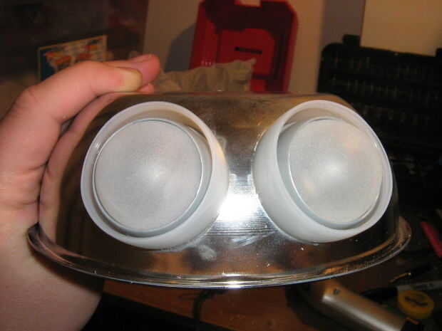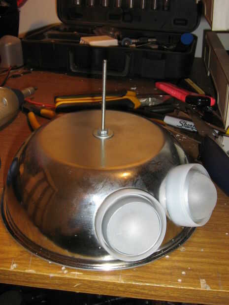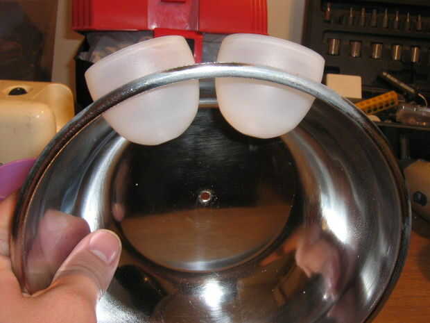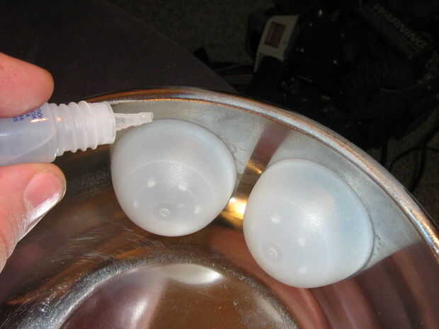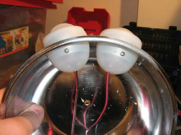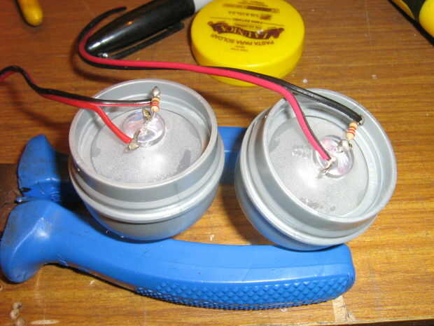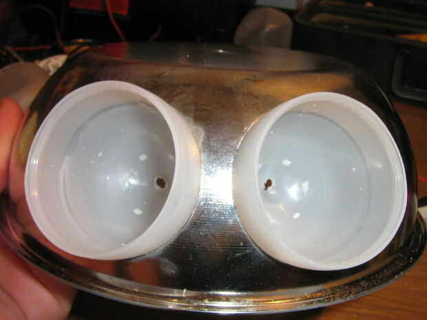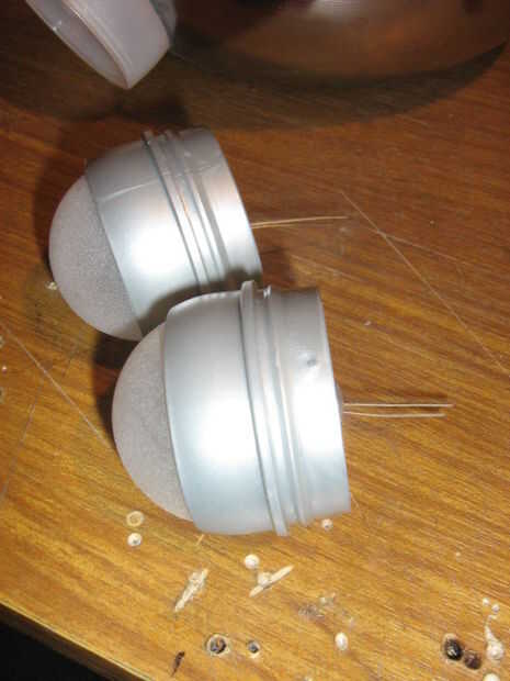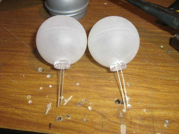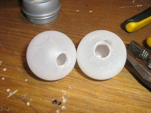 Tomar las bolas (el desodorante los ;-) y abra dos agujeros lo suficientemente grandes para el montaje de los LEDs. Introducir las bolas en los puntos de montaje y fijarlos a las tapas con tornillos.