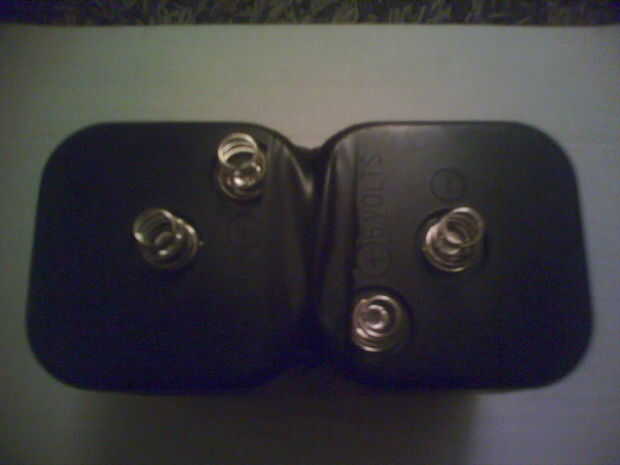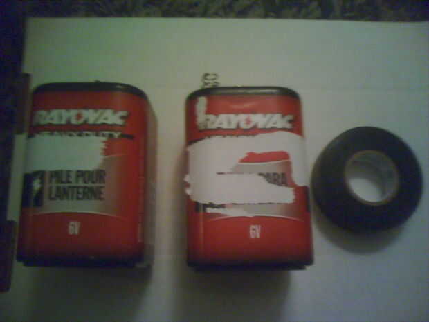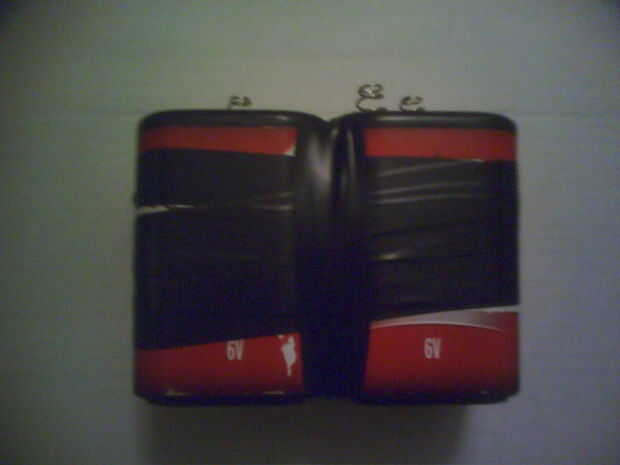 Simple. La imagen muestra, colocar las pilas al lado del otro con los terminales hacia arriba, y únalos con cinta adhesiva la cosa entera como en la imagen. (No importa la posición de los terminales)