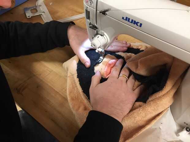 Lugar dragones cara boca abajo en la parte posterior y sembrar una línea alrededor del exterior. Asegúrese de dejar un tramo de unos 7cm por lo que se puede doblar Drake adentro hacia fuera. Para artesanos avanzadas puede elegir agregar un zip aquí. Esto le permitirá acceder al circuito cuando se coloca dentro.