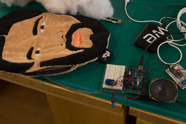 Usted necesitará algunos alambre conductor en la cara de Drake del hilo de rosca. Ser gentil es sensible. deben hacer 4-5 pequeños nudos. Entonces, usted necesitará dejar suficiente hilo para atar a su sensor táctil capacitiva. Cuando incluido su electrónica en una carcasa suave de su deseo y poner dentro de cara de dragones.