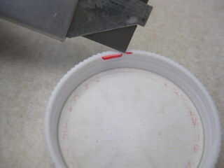 Localizar el interior ficha, enfrente de la lengüeta del pulgar en el exterior de la tapa. Marcado en rojo en la segunda foto. Cuidadosamente corte lejos con un cúter, navaja o cuchilla de afeitar. Sólo mantener quitando material hasta que la tapa aparecerá en cualquier orientación.