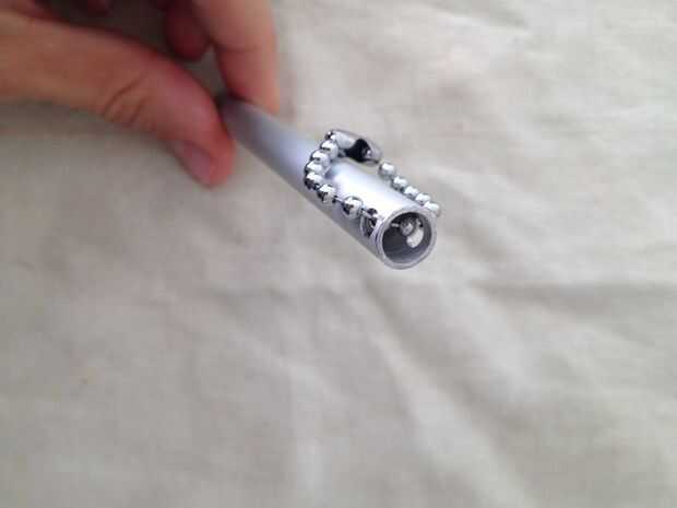 Entré en la cadena y luego usé la parte moldeada para cerrar la parte baja. Para seguridad usé una gota de pegamento para fijar el plástico con un cuerpo de aluminio.