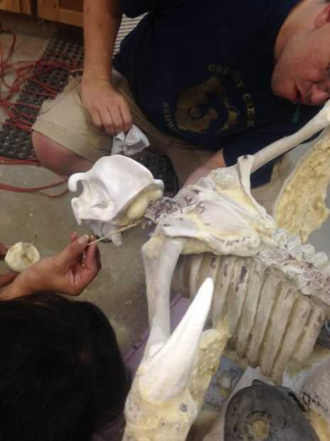 La columna fue acortada por dos vértebras, esto fue logrado mediante la reducción de la columna vertebral en dos partes cortando las vértebras y luego colocando un tubo de PVC dentro de la columna vertebral a través de un agujero en el coxis. Las dos partes de la columna vertebral se atornillan en el PVC para crear un todo. Dos de parte de espuma fue vertida en la columna vertebral y luego dremeled para crear una mirada perfecta.