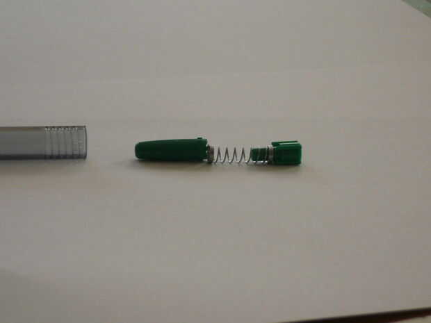 1) tome la pieza clicky, la otra parte que estaba sentado debajo de la pieza clicky en la pluma y la primavera.