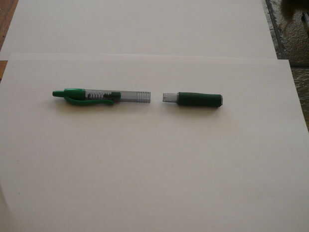 2) Sierra de la zona translúcida abajo el dedo-grip (terminado el corte, usted debe tener el agarre con las roscas de tornillo en la parte superior de la pluma y un pequeño cono translúcido