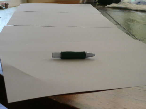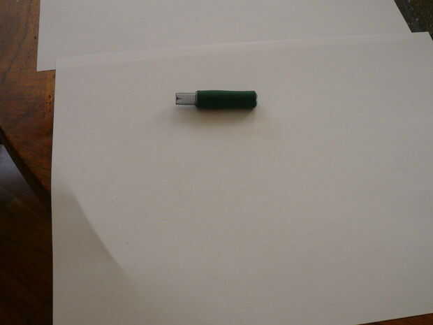 1) tome la parte inferior de la mitad de la pluma y fijarlo con la abrazadera firmemente a una tabla.