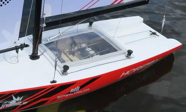 La escotilla es un pedazo de Lexan celebrada a la cubierta con cuatro tornillos de acero inoxidable. Un cierre hermético se logra con dos capas de burlete de goma epom. Es una capa alrededor de la abertura de la escotilla, y la otra es en el Lexan. Cuando las tuercas de mariposa están apretados por el squish sellos juntos muy bien.