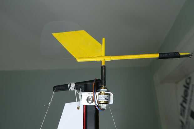 El sensor de viento está montado sobre un pedazo de ángulo de aluminio, con un perno de acero inoxidable a través del mástil.