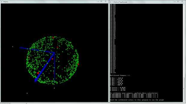 Uno de los problemas más grandes que tuve durante este proyecto estaba tratando de dar sentido a los datos del magnetómetro. Me tomó mucho tiempo para calibrar correctamente; Yo estaba tan exasperado con el proceso que he acabado escribiendo algo de código python/arduino para hacer calibraciones futuras todos automáticamente.