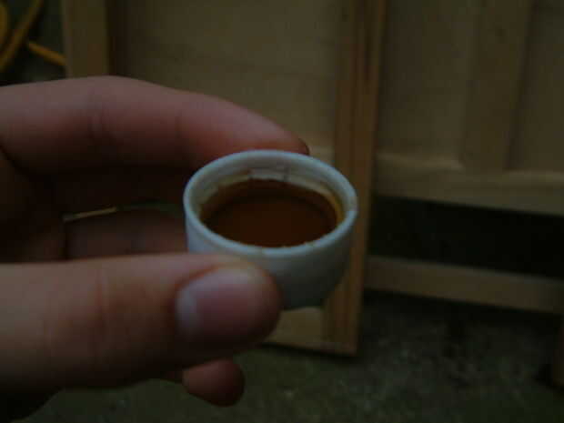 Llene el cartucho de un cuarto de la manera para arriba con vinagre usar la tapa es más controlable. AUNQUE COMO ESTA FOTO, QUE MAL LA MAYORÍA DE LAS COSAS LA AVISPA ME ATACÓ Y ME HIZO UN DERRAME DE VINAGRE EN MI MANO!!!!!!