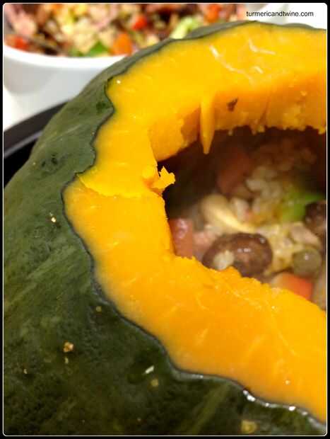 Hornear durante 25-30 minutos. Mientras está horneando, limpiar la cocina desordenada y pensar acerca de cuánto comes tu calabaza rellena.