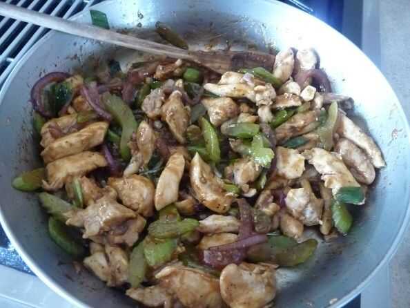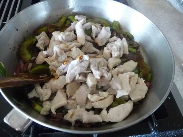 Añadir el pollo velveted, reduzca el calor al medio y revuelva para cubrir. Deje que el calor del pollo, aproximadamente 1-2 minutos más.