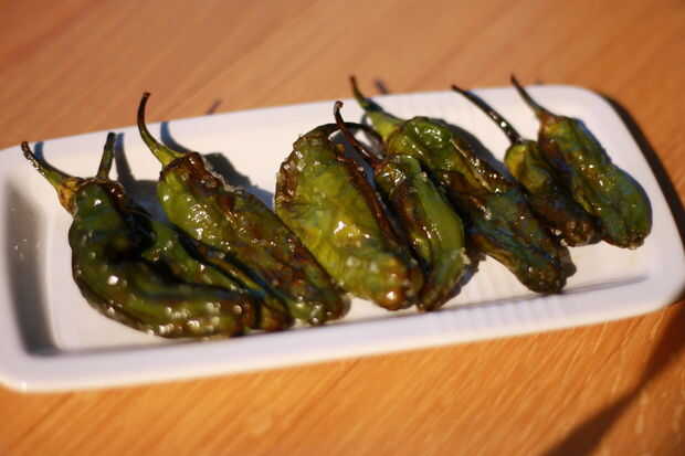 Incluso sin verdadera pimientos de Padrón, se puede preparar este plato en casa. Comparar las fotos de mis pimientos con los de un restaurante en Lisboa, Portugal.