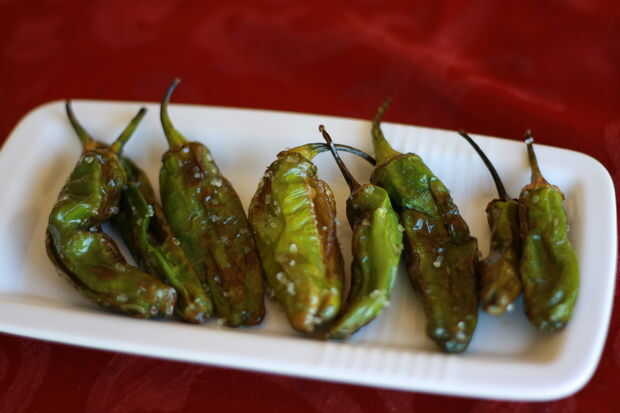 Pasó la mayor parte de abril y mayo de 2009 viajando por España y Portugal y todavía sueñan con la comida: Jamón ibérico, Manchego de 5 años de edad, porco Alentejana (carne de cerdo y almejas)... Cuando me topé con estos pimientos en el mercado, inmediatamente pensé en recreación de pimientos de Padrón.