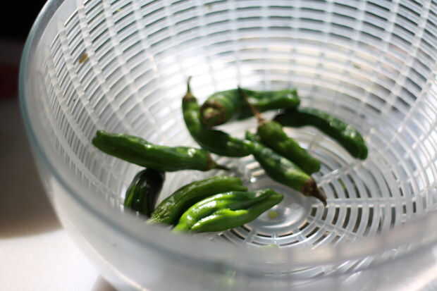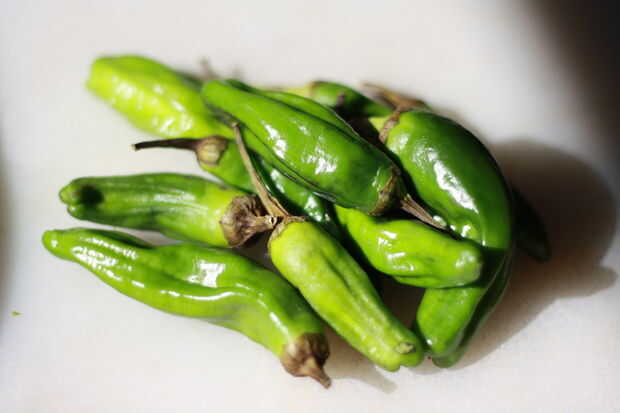A diferencia de ciertos pimientos del Padrón, al parecer ninguno de estos estará caliente. Parte de la diversión de Pimientos de Padrón es toparse con un caliente, pero estos aún le gusto gran.