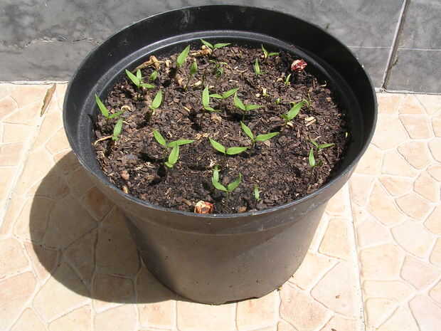 Siembre las semillas en general propósito para macetas suelo, separadas unos 2 cm.