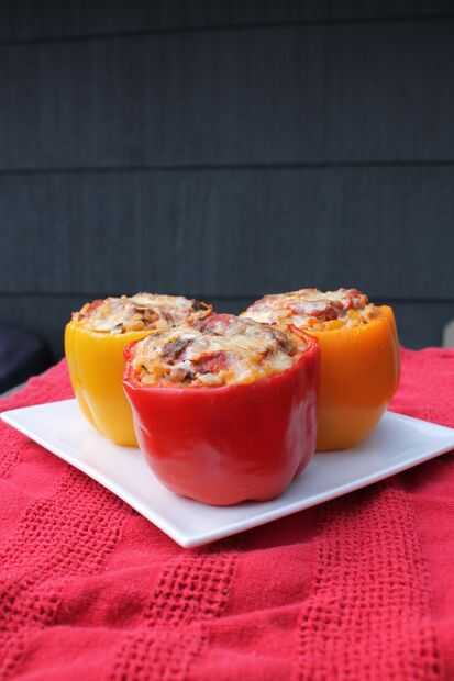 pimientos rellenos están cargados de sabor! Son deliciosos, fáciles de preparar y se puede modificar la receta tanto como te gusta! Si tienes albahaca fresca para la receta - realmente eleva el sabor! Estoy empezando a comprar más cosas de la tienda