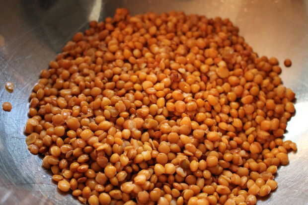 Enjuague y escurra las lentejas. Poner en un tazón grande.