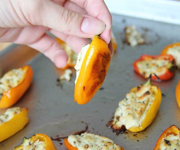 Estos pimientos rellenos son saludables y deliciosas!También son celíacos y vegetarianos, así que son perfectos para servir a un grupo de personas con algunas restricciones en la dieta.La receta completa sirve 12, pero usted puede elegir hacer pimien