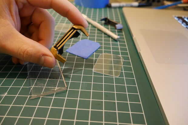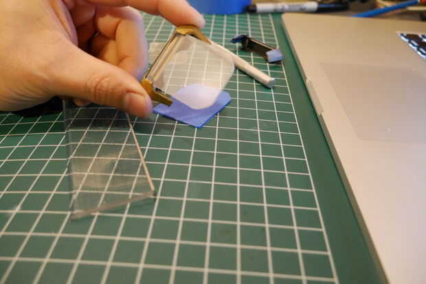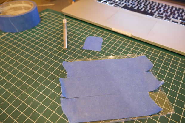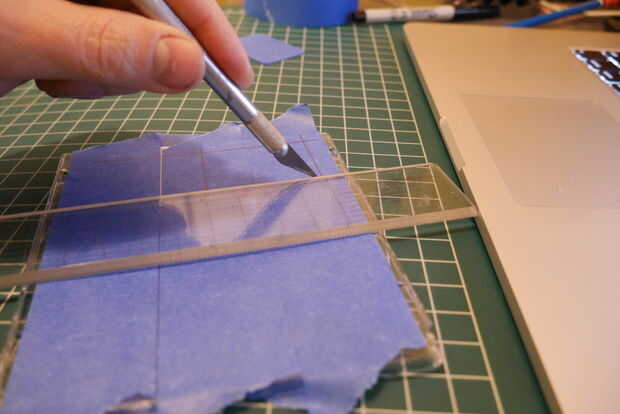 Dibujar el rectángulo necesario para la pantalla 1-11/32" de ancho y 1-7/8" de largo con una regla y un rotulador de punta fina.