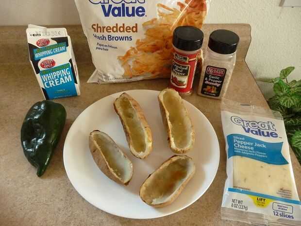 Tomar las papas congeladas del congelador y guesstimate cuánto necesitarás rellenar las patatas. Usé unos 3/4 de taza por patata. Esto no es un paso fundamental porque siempre puede agarrar más si no tienes suficiente. Ningún daño, ninguna falta.