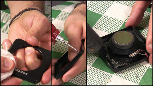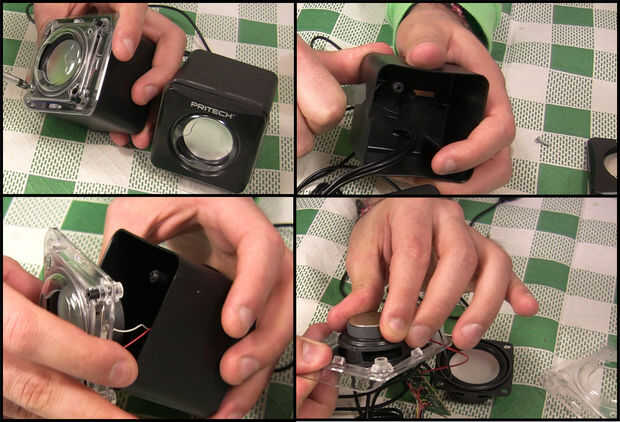 Luego, pegué altavoces al plástico.