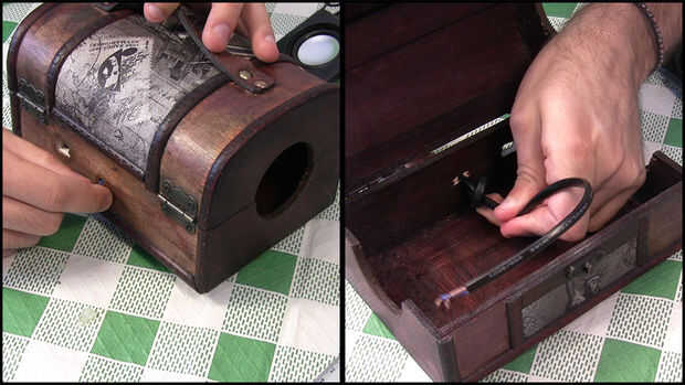 Entonces, el hilo era alimentado en el cofre del tesoro y el nudo atado, por lo que no puede extraer.