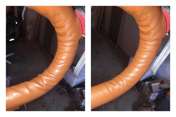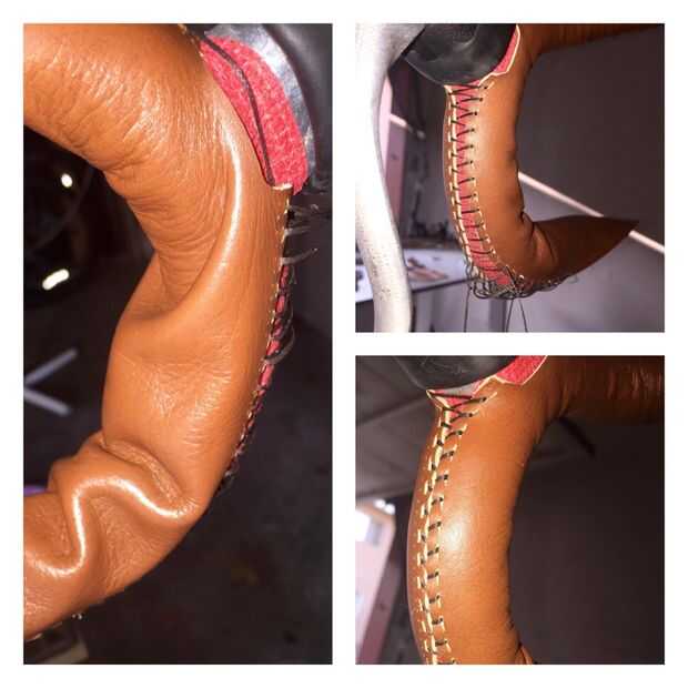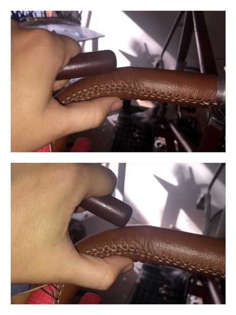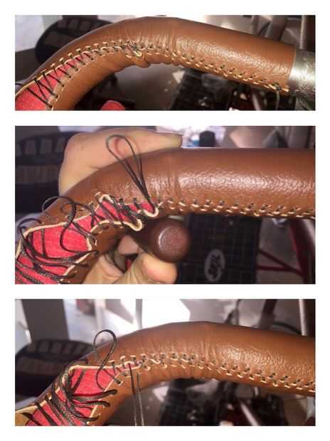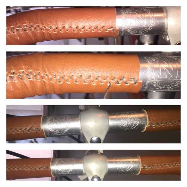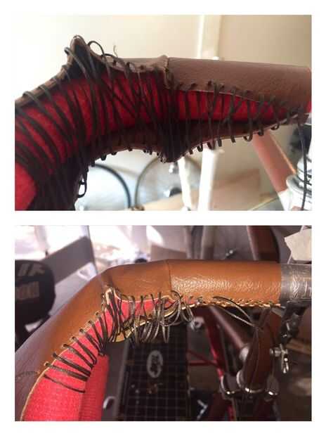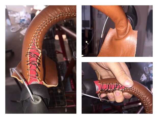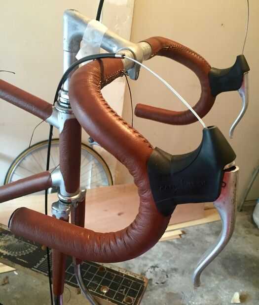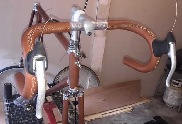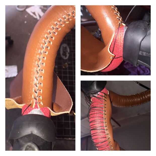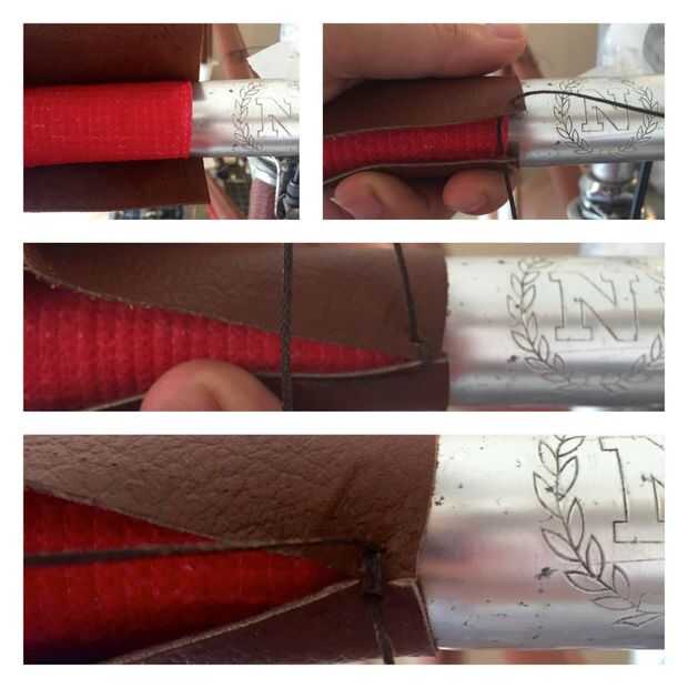 El pedazo de cuero utilizado para la barra de la manija es básicamente sólo un rectángulo largo con un pequeño corte por donde van los frenos. Es bueno hacer un poco más para tener cierto margen de maniobra.