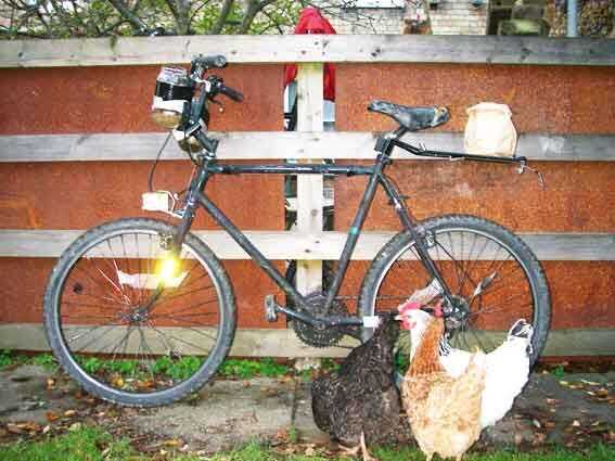 Pollos altamente capacitados entregan la moto una última revisión minuta antes de la oscuridad.
