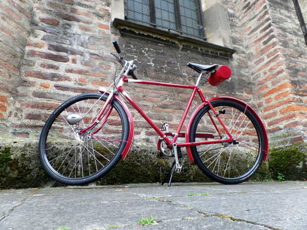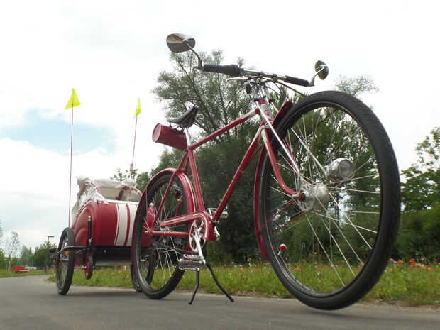 A principios de verano 2013 compré un golpe hacia abajo de la bicicleta, construido por NSU (Alemania). Según el número de marco se construyó alrededor de 1952. La idea era crear una moto digna y capaz de remolque mis niños rojo.