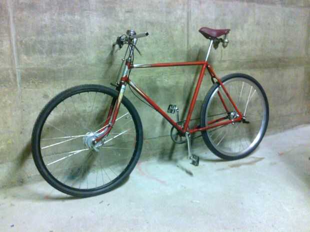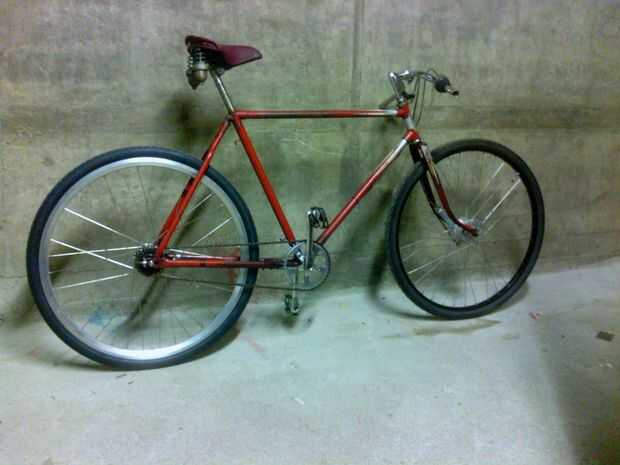 He añadido un nuevo neumático para la rueda trasera y sacan de mis casillas una palanca para el freno de tambor de freno. La palanca de la rotura del sello fue doblada recto y acortada para que coincida con el manillar.
