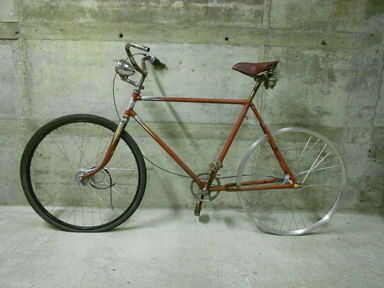 Para las primeras semanas después de comprar, he estado buscando ebay y otros tanto para las piezas utilizables, más importantes: las ruedas! El plan era construir una bicicleta para transportar mi trailer de los niños, estaba claro que necesitaba un eje posterior con por lo menos 7 marchas (sí, lo sé, no es muy histórica, pero hombre, es muy montañoso por aquí), y por seguridad razones quería un tambor de freno en frente. Pensamiento tan y tan comprado!