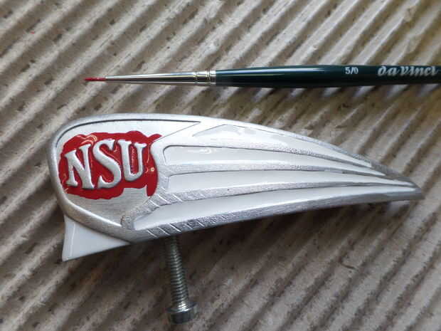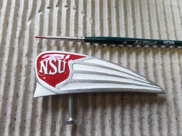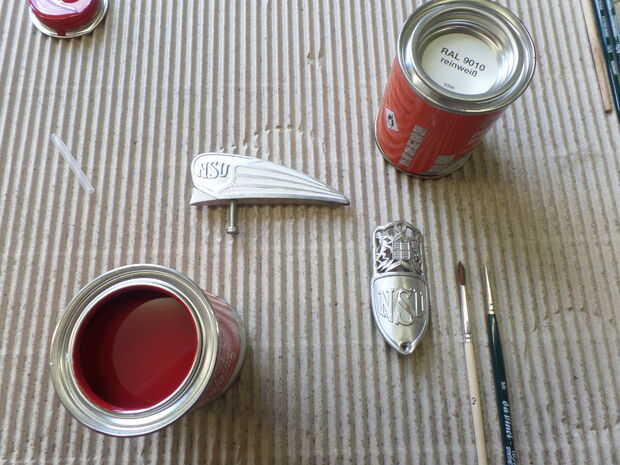 Compré algunos pintura de alto brillo con el mismo número RAL como las latas de traqueteo y luego pintar los emblemas con algunas muuuuuy pinceles finos. Realmente era más una especie de goteo de la pintura en su lugar, o un montón de diminutos puntos de inflexión...
