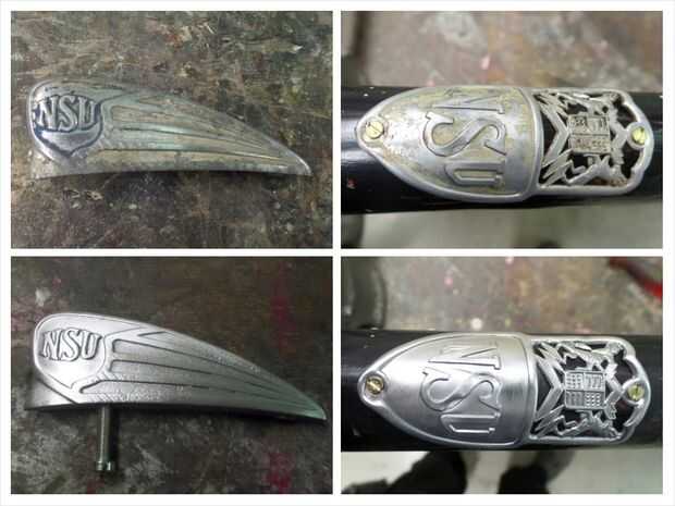 En el escudo de defensa primero debían recut la rosca para el tornillo. Entonces dio tanto un cambio de imagen con un cepillo de taladro. Primeras de nylon y cepillo de latón. Salió muy bonito.