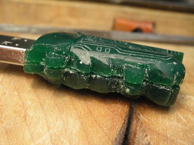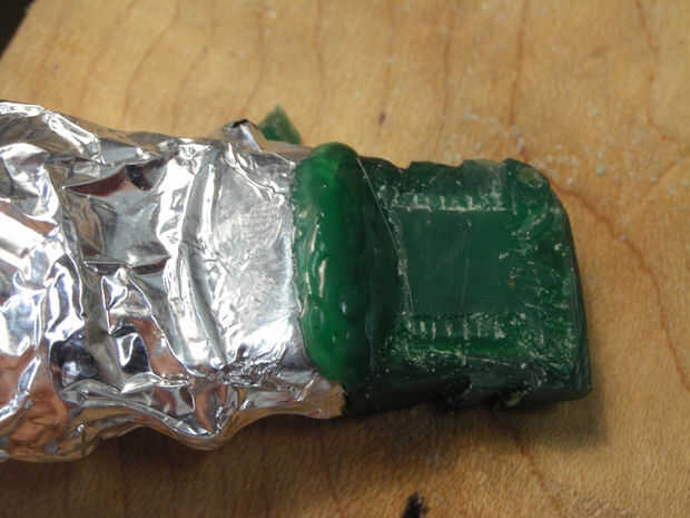 talla hasta la placa superior y fijarlo para el caso. Les até a calentar una hoja de herramienta de talla de cera y empujándolo a través desde el interior de la caja aproximadamente hasta la mitad en la placa superior. Esto les reúne. Luego fui alrededor de los bordes y había derretido, agregar la cera donde lo necesitaba.