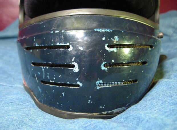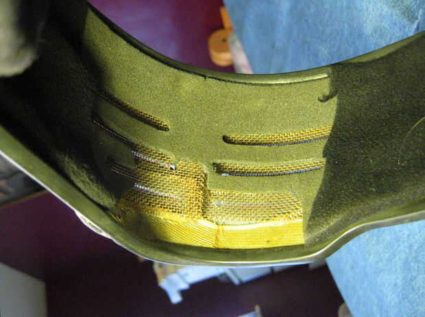 Poner el micrófono en el interior de la porción de la boca del casco. Conecte con un cable. En este casco fue muy fácil porque ya había una parrilla del acoplamiento de la boca.