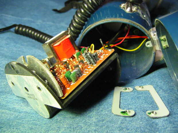 Retire las pilas y abra la carcasa de la placa de circuito. Esto se logra sacando 3 tornillos en la parte posterior del megáfono.