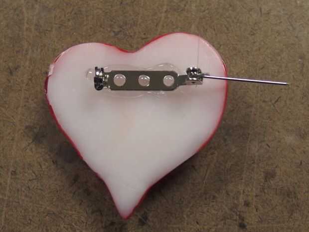 pegue el hallazgo de pin en la parte posterior del corazón.