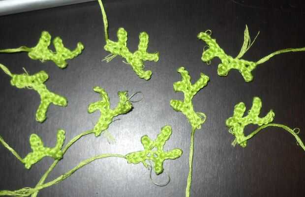 seguir con 4 ch, volver a la ch 1 con 6 sl;