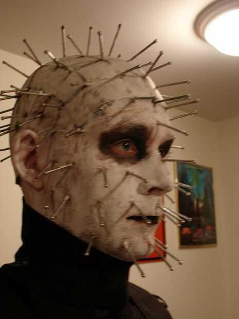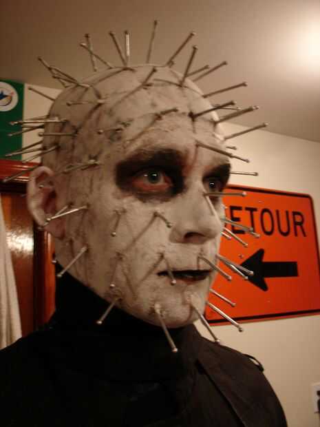 Utilizando las mismas técnicas de pegar como en el casquillo Calvo, extender las líneas en la cara de los pernos de la tapa y el pegamento en las intersecciones. Deben recibir 3 o 4 líneas en la cara: uno en la barbilla, uno por encima de los labios, dos a través de la nariz. De nuevo, utilice imágenes de internet como su guía. Una vez que los pernos se pegan y se sienten relativamente seguros (meneo y asegúrese de que no caigan inmediatamente), pintar la cara blanca y tratar de mezclarse con la pintura blanca de la tapa. Asegúrese de pintar debajo de la barbilla, en y detrás de las orejas y el cuello (esto es donde un socio realmente ayuda!). Una vez seca la pintura blanca, dibujar en las líneas entre los pasadores para completar la cuadrícula.