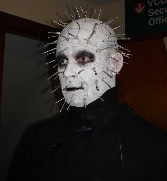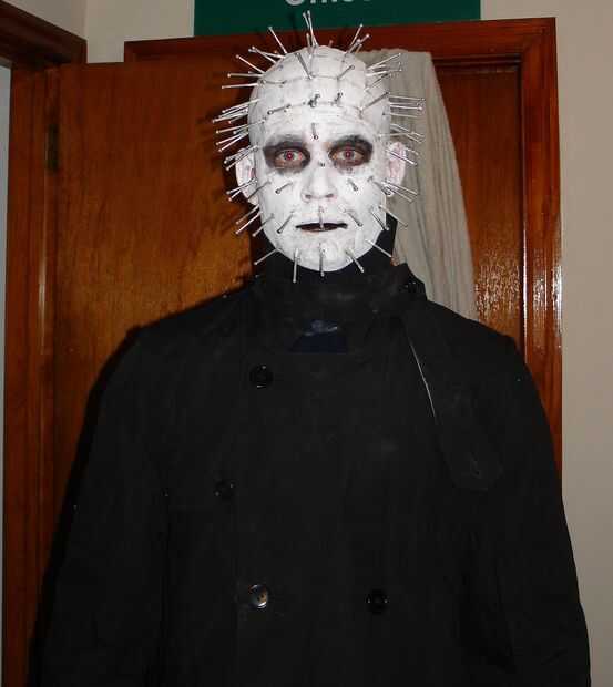 Acabaremos con labios negros y alguna sombra de ojos negro. Para efecto añadido, conseguir algunos contactos de black out. Pintar el blanco de las manos y uñas blanco o brillan en la oscuridad. Usar el abrigo con el cuello subido, botón cerrado y retirar la correa (si tiene uno). Usar un cuello de tortuga negro, pantalón negro y botas de cuero oscuro.