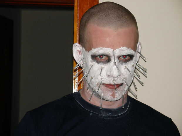 Así que es hora de fiesta! Lo primero es lo primero, mejor si afeitarse la cabeza, o al menos cortar su pelo muy corto. Con ayuda, ponerles la tapa calva y asegúrese de que su centrado y todos los pernos están sacando bastante recto. Utilizar látex líquido alrededor del borde para mantener en su lugar y para suavizar el borde para mezclas. Volver a pegar las patas que se cayeron o cayeron encima (a un lado del pin vino probablemente separado).