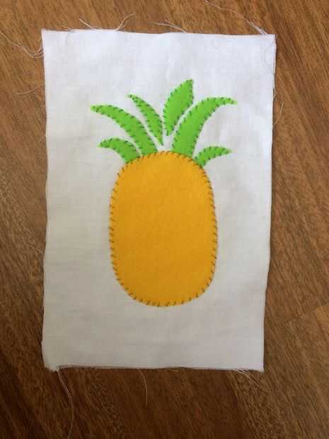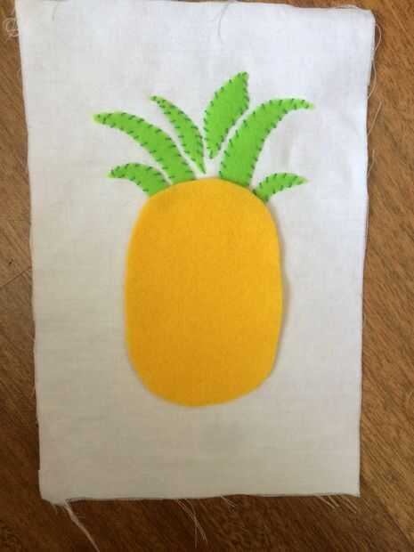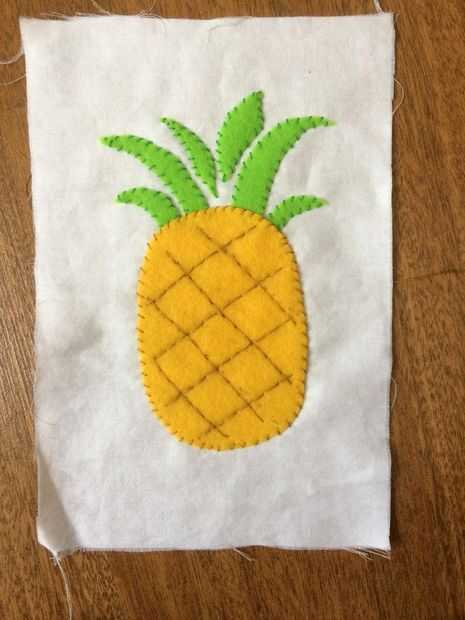 Colocar la piña en la tela y coser alrededor de él. Dibujar líneas y coser con una puntada atrás.