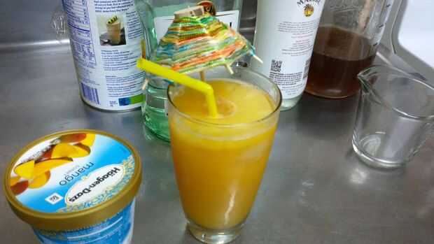 He añadido una pequeña bola de sorbete de mango (o rebanadas de mango real) a mi bebida (la bebida es bastante dulce sin él pero: 3 me gusta mango)