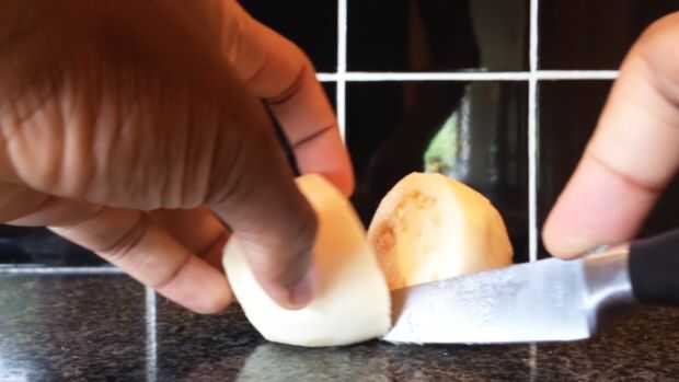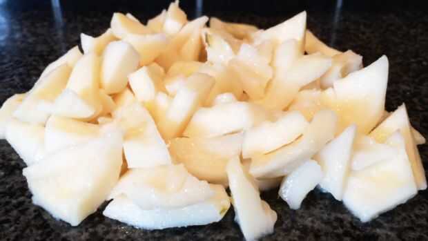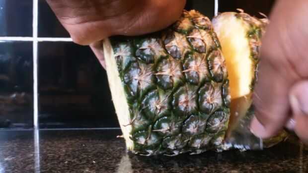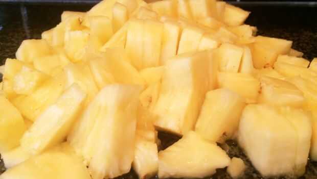 Cortar la piña, la guayaba en trozos finos y el jugo de la cal.