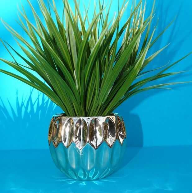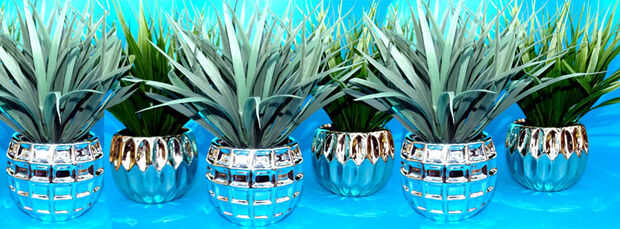 Es realmente sencillo de hacer pero es tan rad. La parte más delicada es encontrar un pequeño florero/candelero que parece la base de una piña. He encontrado mina en la fabulosa colección Navidad Chic tienda de artesanía de Michaels. Realmente cualquier patrón servirá pero busque las formas que se asemejan a los de piñas. La hierba que se agrega a los Portavelas de florero completarán el look.