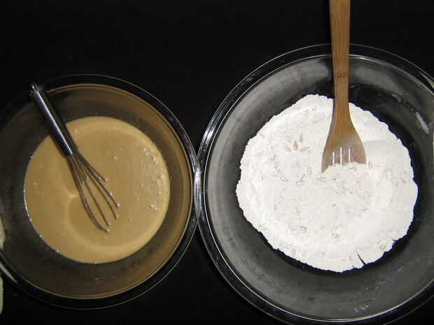 Combinar los húmedos a los ingredientes secos y mezclar bien, la masa del muffin está ahora lista para su uso.