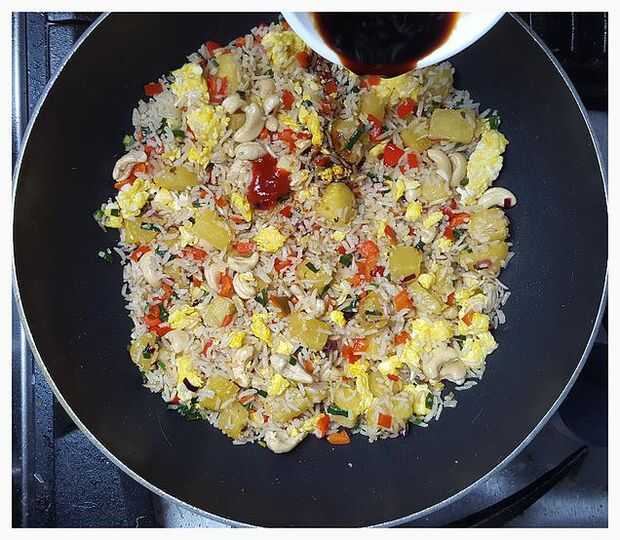 se trata de un plato flexible en cuanto a los ingredientes. Experimento con lo que tienes disponible. Aquí está una lista de los ingredientes que utilicé para este particular plato. 3 huevos 1 taza de capuchino de taza de capuchino arroz 1.5 de agua