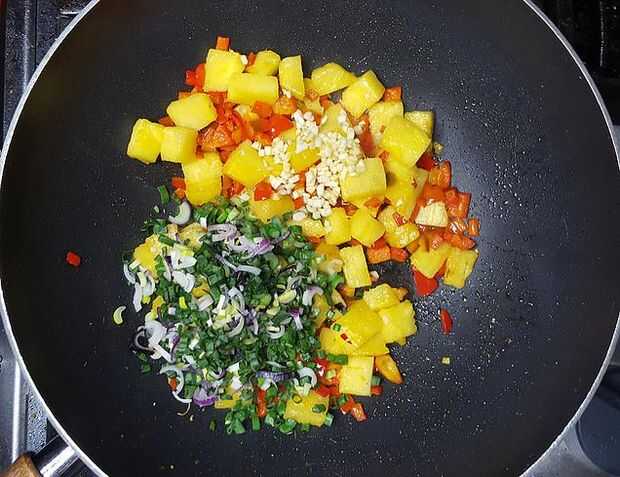 Piña tailandesa huevo frito arroz (4 / 11 paso)